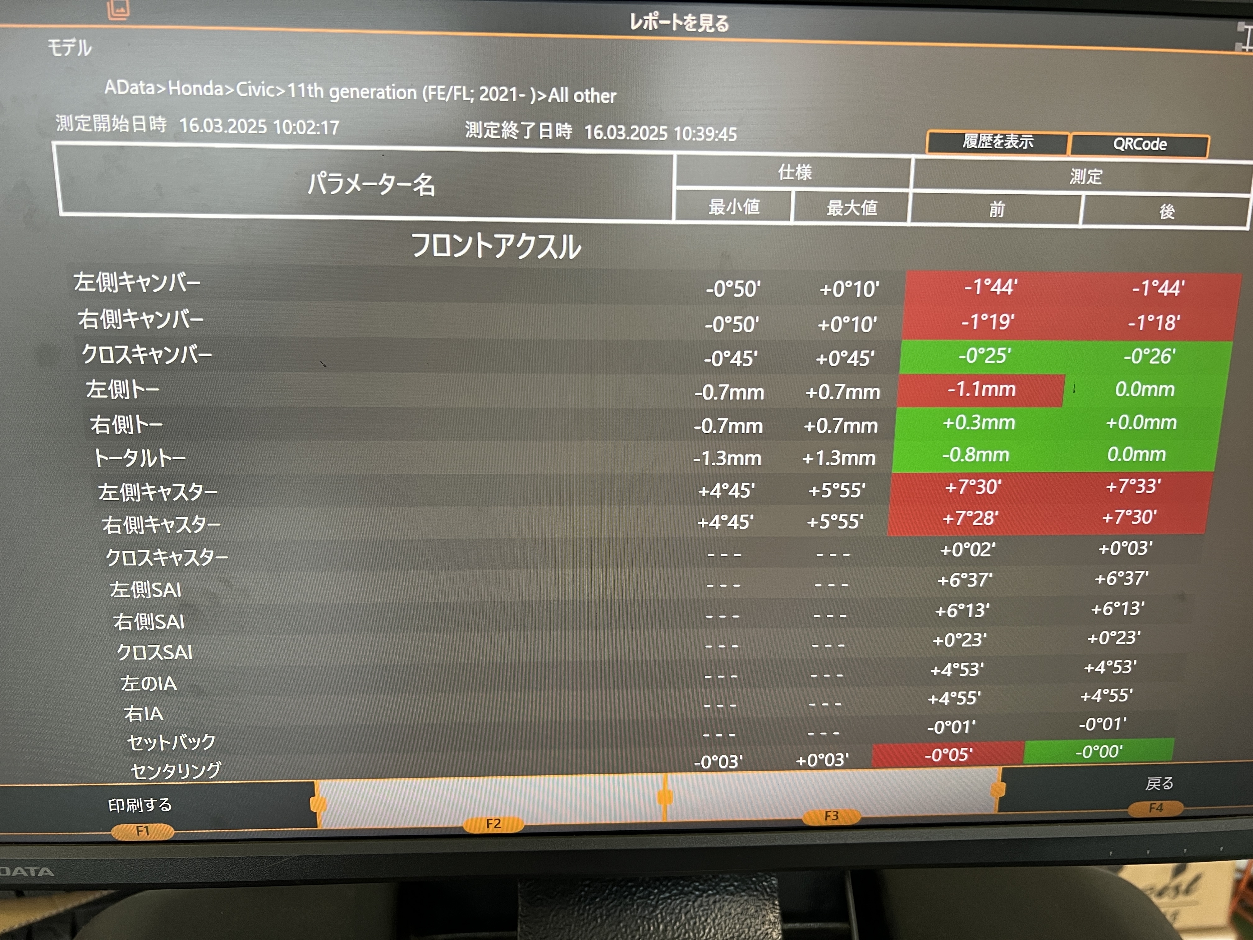 ステアリングギヤボックスでリコールが出て、部品の交換が終わって念の為にアライメントを取りに来た