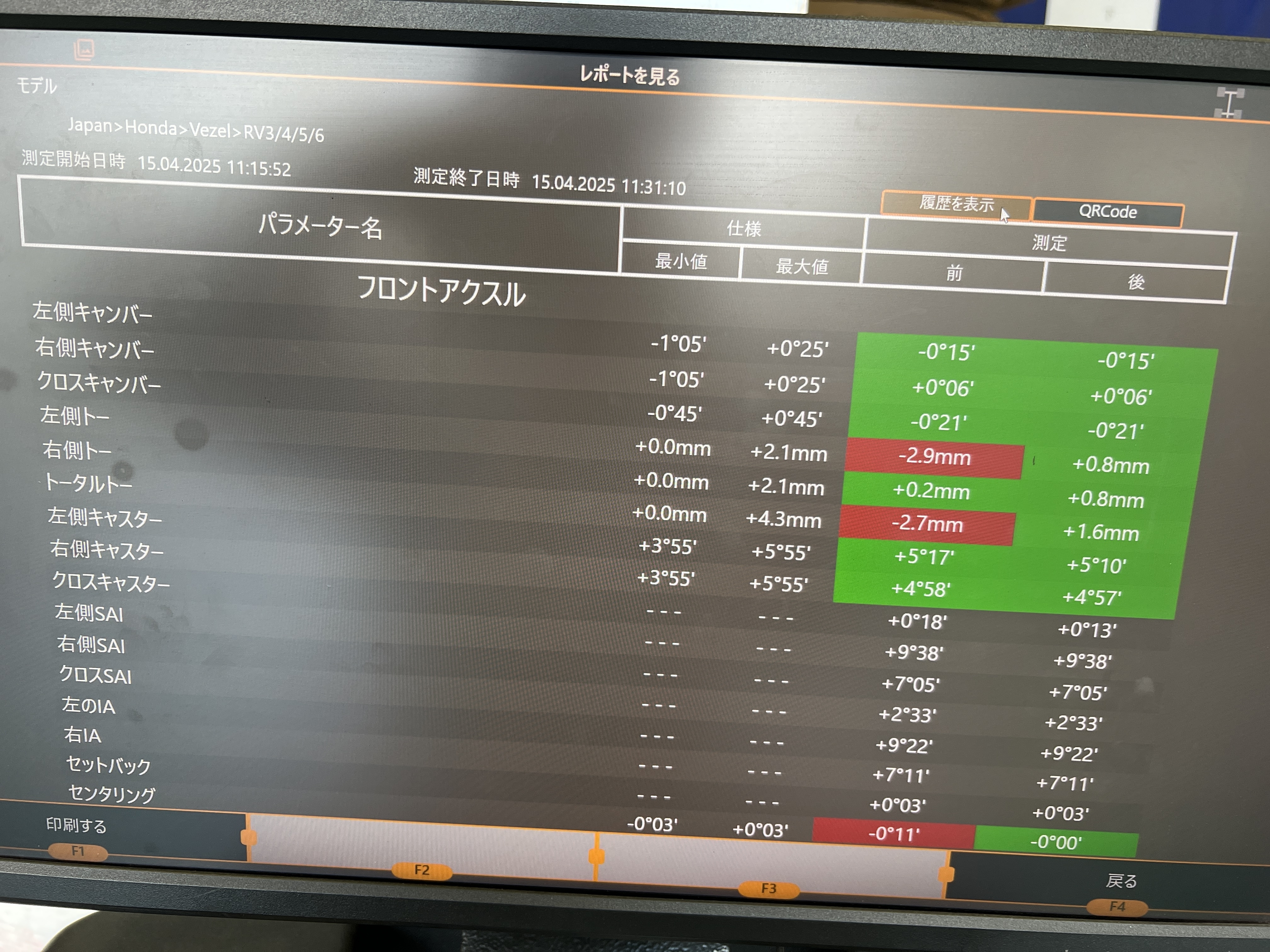 先程ホンダのヴェゼルでアライメント調整させて頂きました!