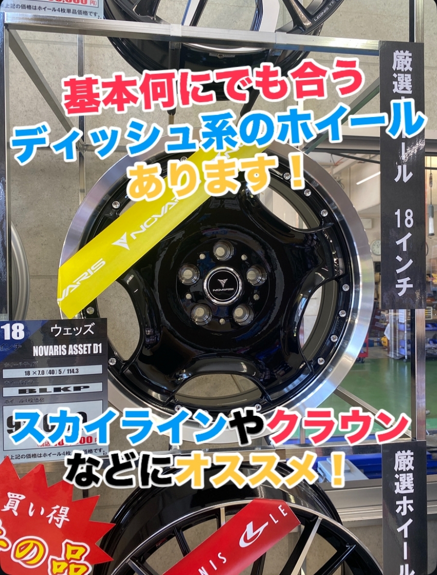 基本何にでも合うディッシュ系のホイールあります!! スカイラインやクラウンなどにオススメ!!!