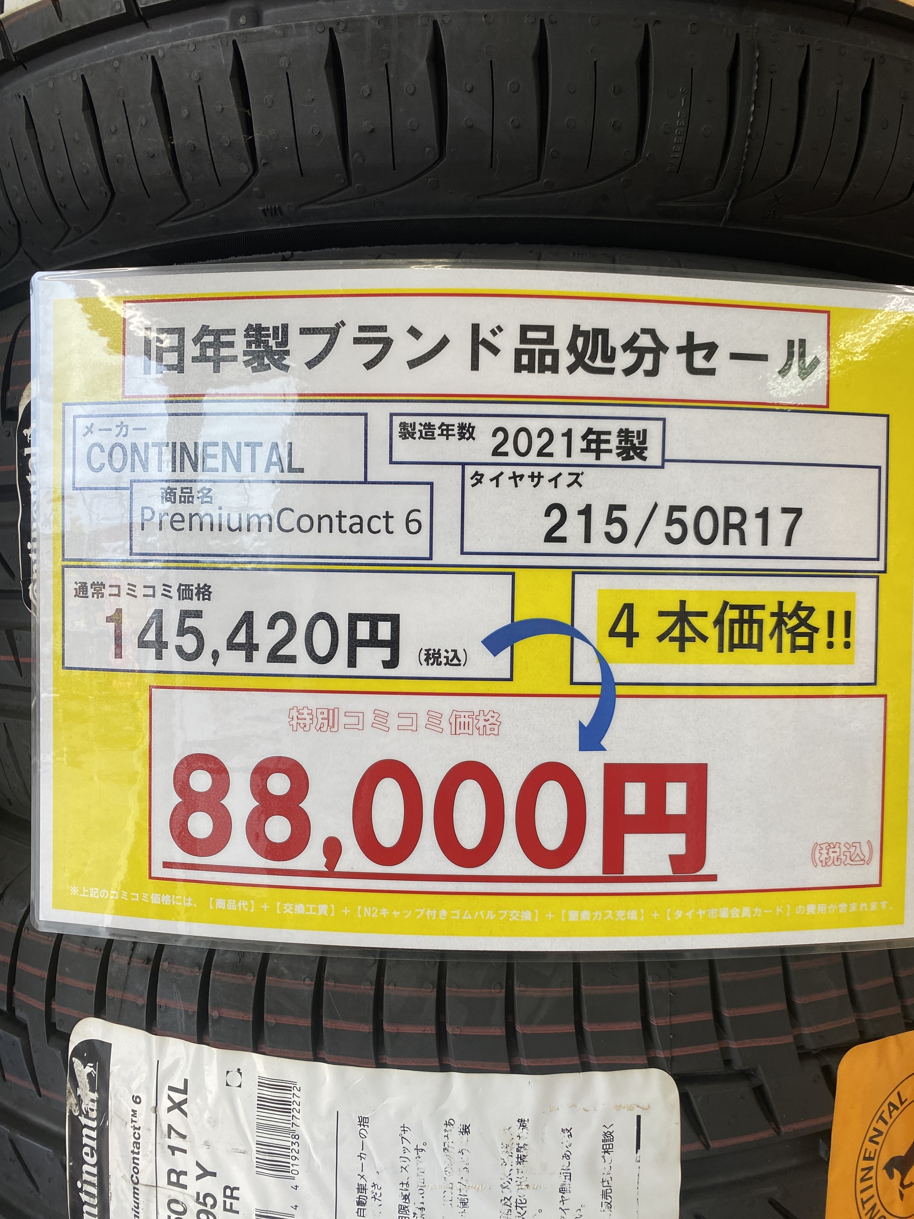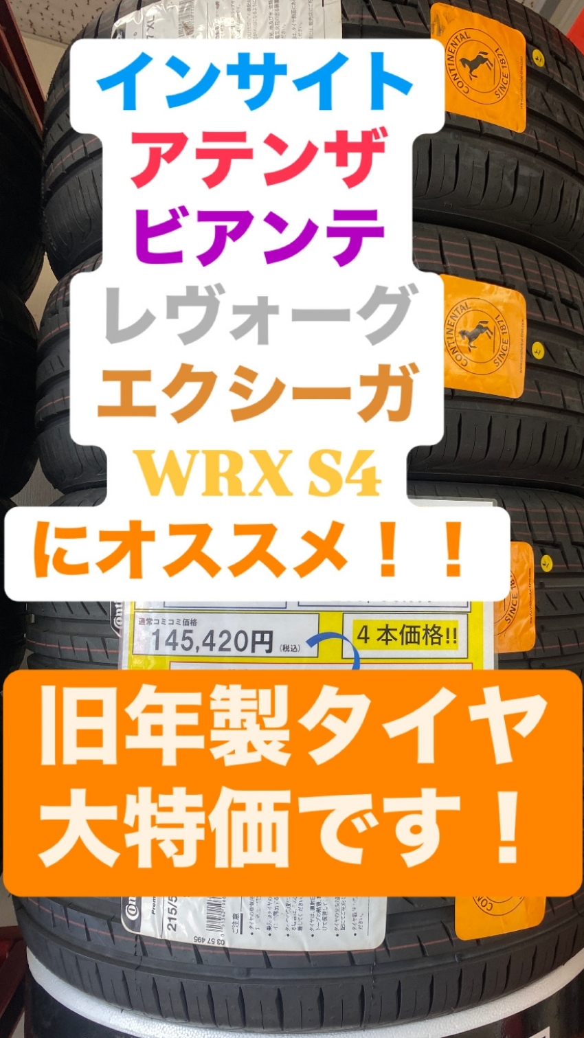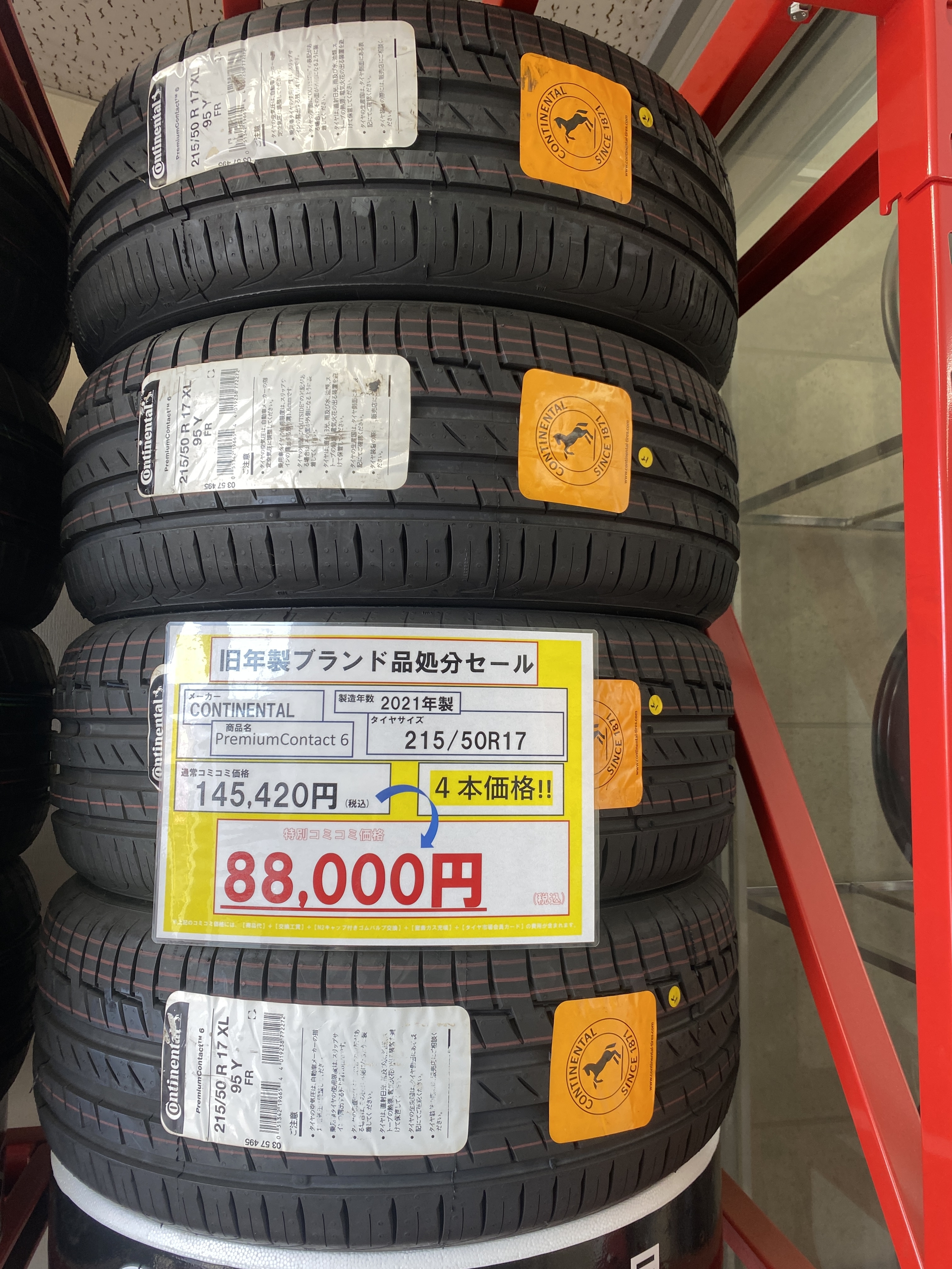 インサイト・アテンザ・ビアンテ・レヴォーグ・エクシーガ・WRX S4にオススメのアウトレットタイヤ、215/50R17コンチネンタルPC6限定1セットのみ!!!