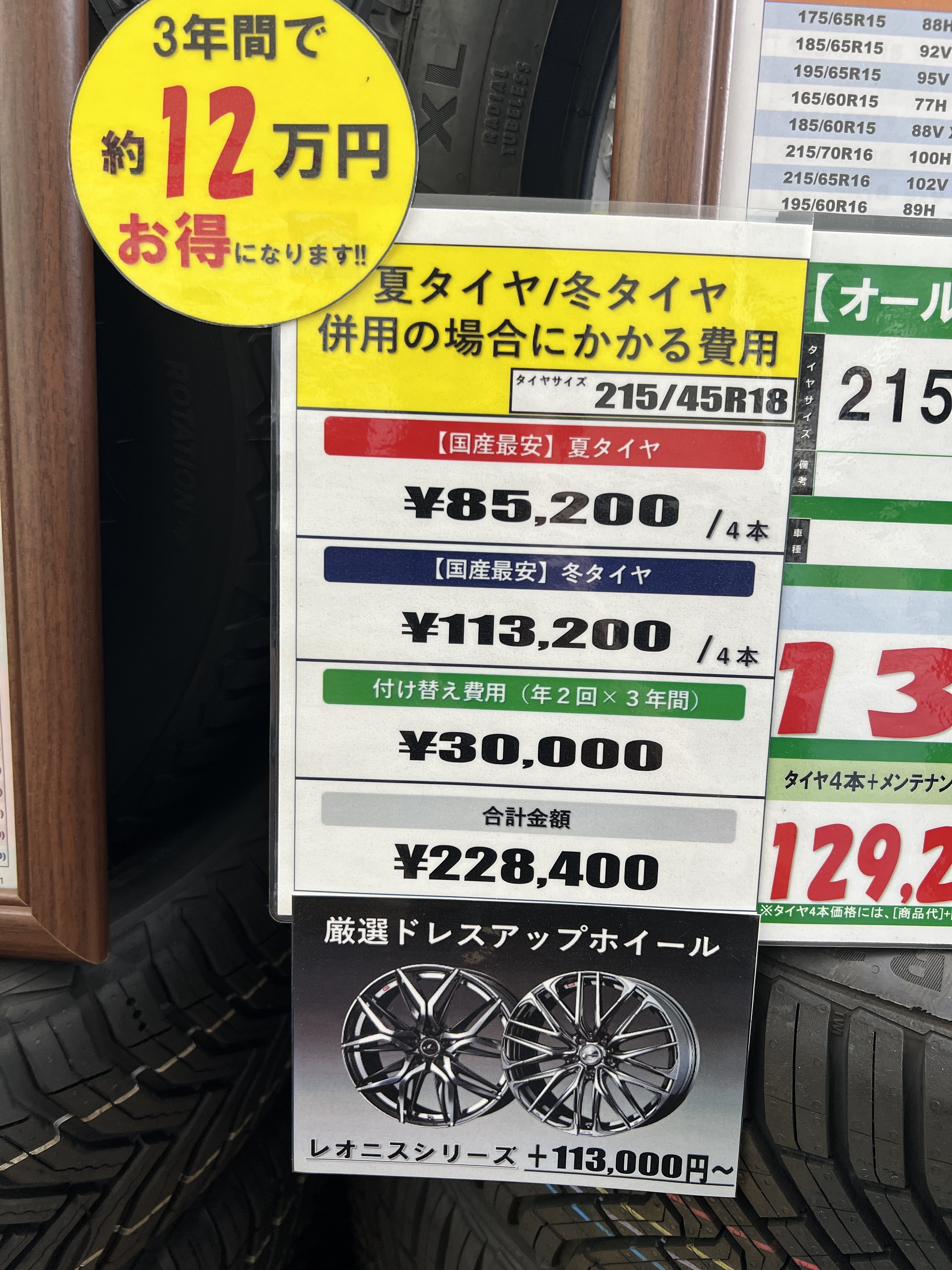 夏タイヤと冬タイヤ2セット持つより断然お得!