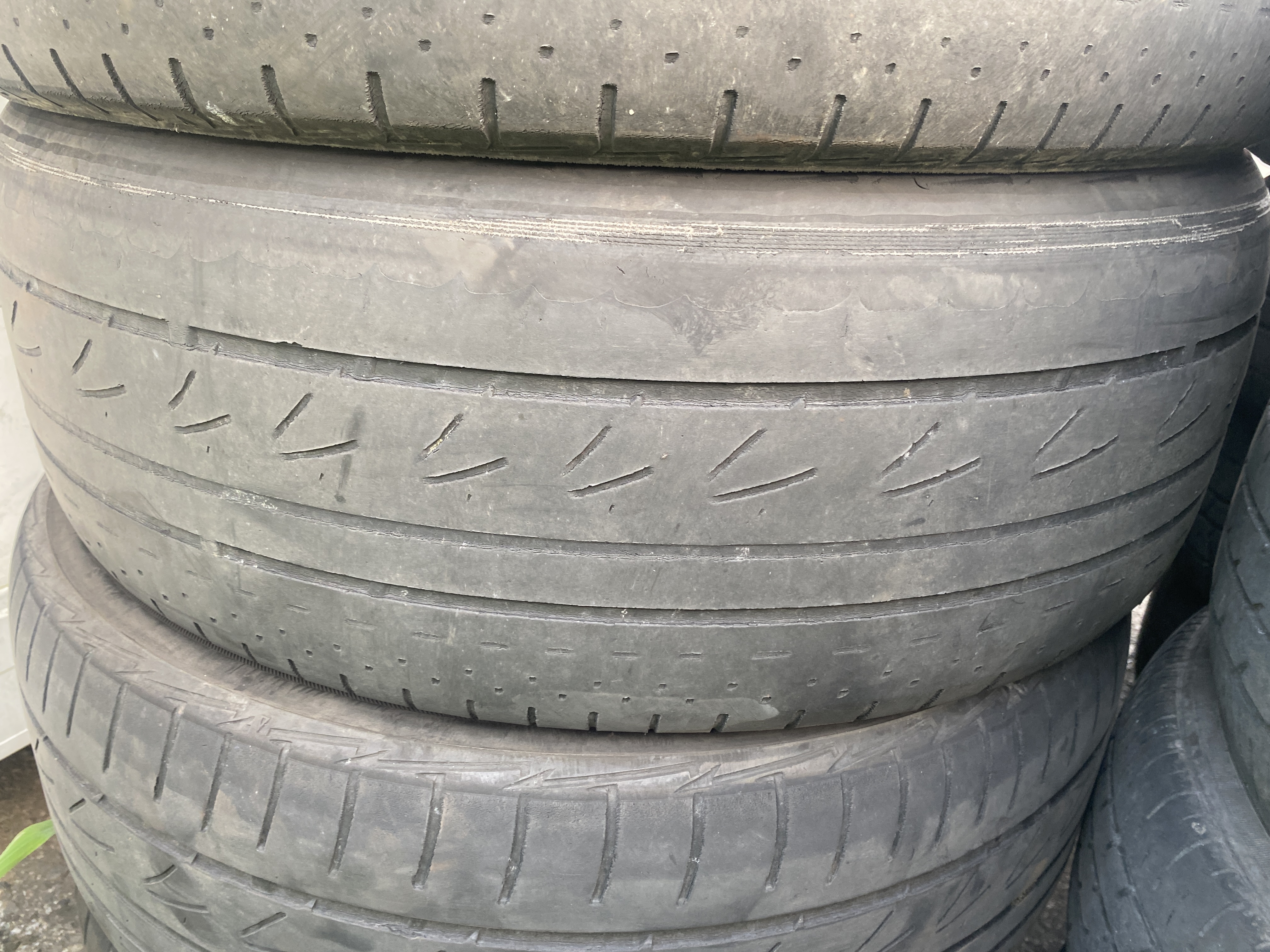 タイヤの外側がワイヤー出るほどアライメントがずれてしまっている