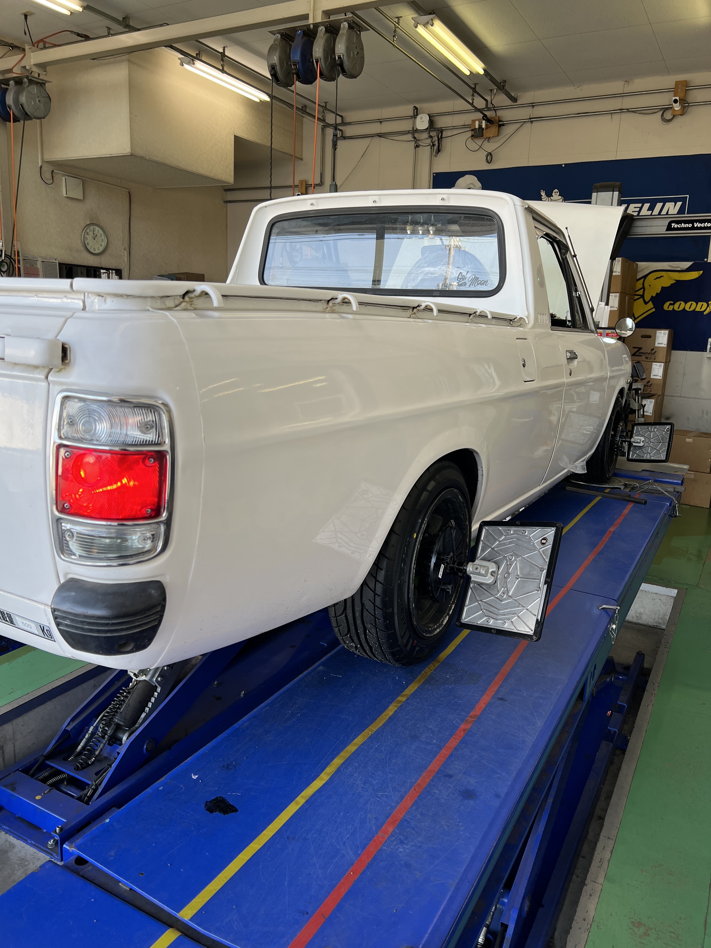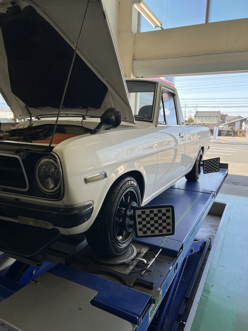 懐かしのサニトラご来店です、アライメント調整ありがとうございます!
