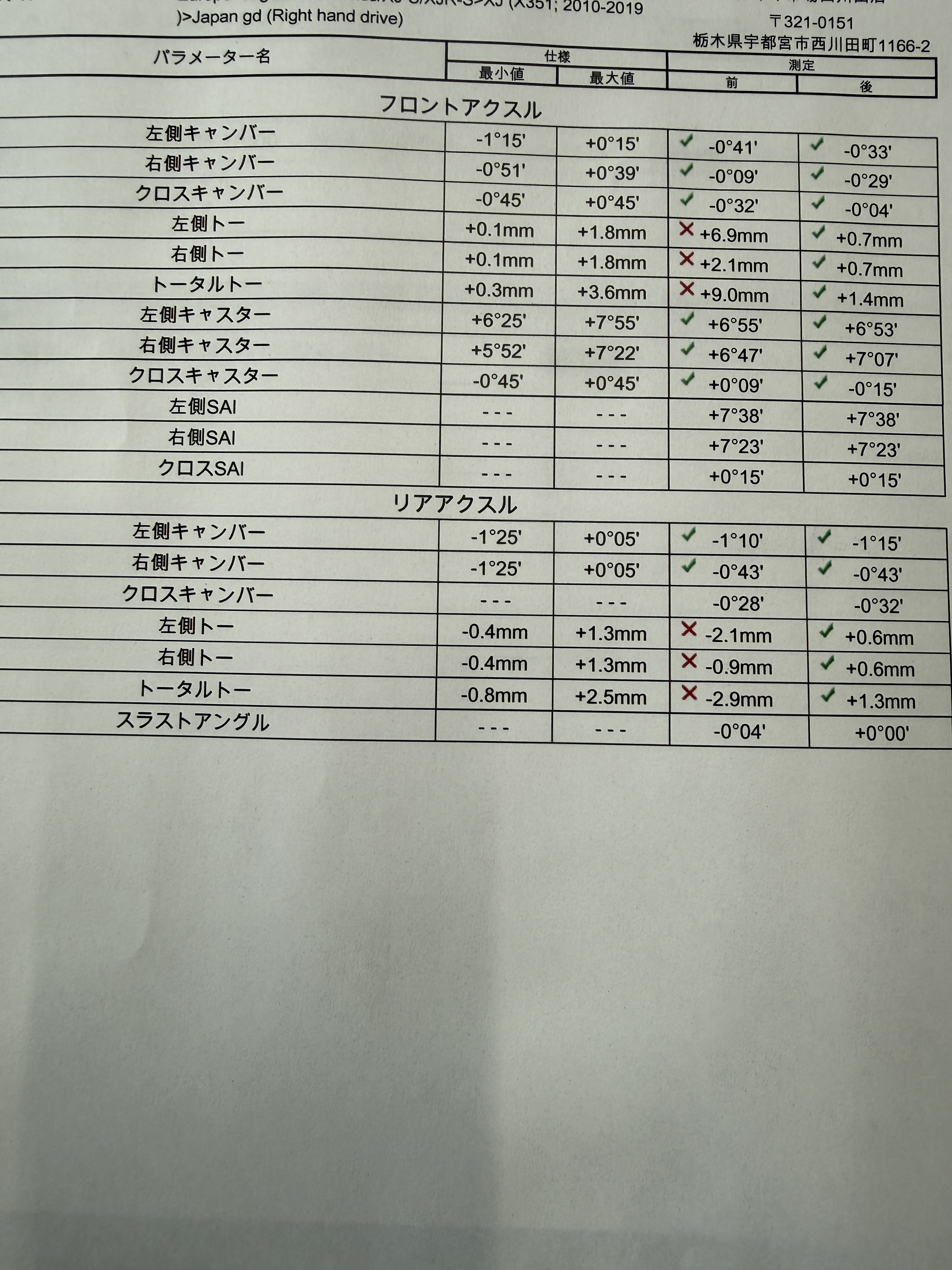 本日はジャガーXJでアライメント調整