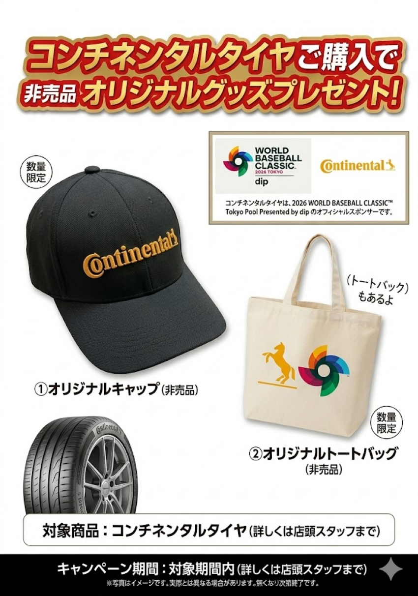 コンチネンタルのタイヤをお買い上げのお客様限定!オリジナルグッズプレゼント( *´艸`)